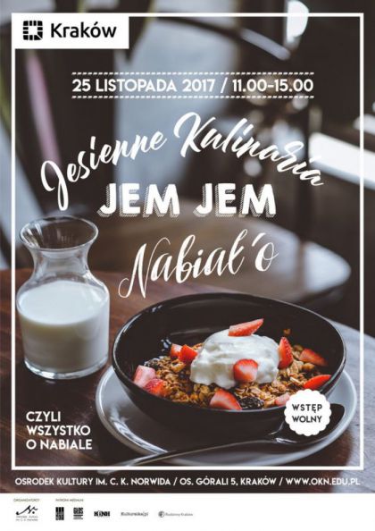 Ośrodek Kultury Norwida zaprasza na trzecią edycję Jesiennych Kulinariów JEM JEM. Tegoroczna edycja zostanie w całości poświęcona zagadnieniom związanym z nabiałem.