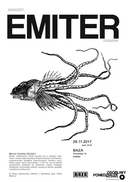 Muzyk, improwizator. Emiter porusza się w obszarze elektroniki, muzyki improwizowanej. Eksperymentuje z brzmieniem, przetwarzaniem dźwięków towarzyszących naszemu życiu. Emiter używa i łączy różne jakości – lo-fi/ hi-fi, czy też dźwięki powszechnie uznawane za zakłócenia. Tworzy instalacje dźwiękowe, słuchowiska radiowe, muzykę do filmów, spektakli i przestrzeni publicznych.