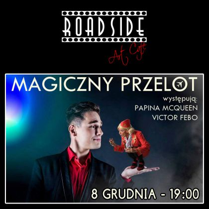 Już 8 grudnia w piątek w Roadside ArtCafe odbędzie się wyjątkowy pokaz stand-up "Magiczny przelot". Gwiazdami tego wieczoru będzie Papina McQueen - Stewardessa w przelocie - pierwsza wykonująca własny stand-up Drag Queen w Polsce oraz iluzjonista Victor Febo.