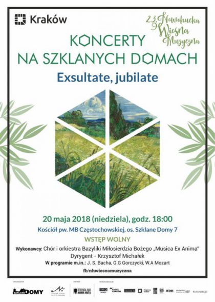 Koncert w wykonaniu Chóru i orkiestry Bazyliki Miłosierdzia Bożego Musica Ex Anima. Dyrygent Krzysztof Michałek. W programie: J. S. Bacha, G. G. Gorczycki, W. A. Mozart. Wstęp wolny.