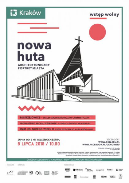Spacer architektoniczno-urbanistyczny po Mistrzejowicach w ramach projektu Nowa Huta – architektoniczny portret miasta*. Prowadzenie: Michał Wiśniewski (Fundacja Instytut Architektury). Zapisy do 5 VII. Wstęp wolny.