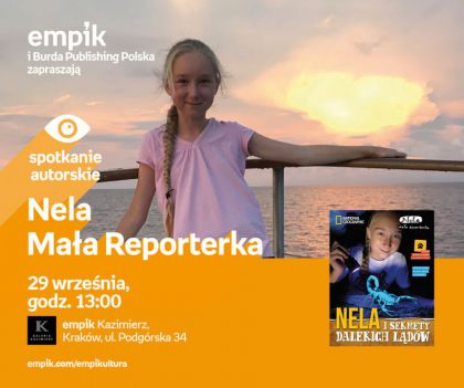 Jedna z najmłodszych podróżniczek na świecie wyrusza na kolejną wyprawę pełną przygód. Tym razem Nela zgłębia tajemnice Borneo – wyspy zamieszkanej przez endemiczne stworzenia, skarłowaciałe zwierzęta oraz potomków łowców głów. Swoje odkrycia z wyprawy opisuje na kartach książki „Nela i sekrety dalekich lądów” (Burda Publishing Polska). Dowiemy się z niej m.in. o tym, jak naprawdę wyglądają niebezpieczni „leśni ludzie” widziani tam setki lat temu, poszukamy przedziwnych małp nazywanych nosaczami a także wybierzemy się w nocy na eksplorację dżungli, w zupełnie innym świetle niż światło księżyca. O swoich niesłychanych przygodach Nela Mała Reporterka opowie nam także podczas spotkania, a na zakończenie uczestnicy będą mogli zdobyć pamiątkowy autograf, pieczątkę oraz zdjęcie. Zapraszamy!
