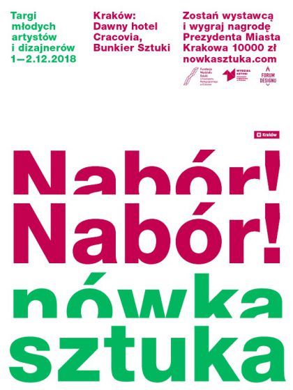 Targi młodych artystów i designerów Nówka sztuka odbędą się w Krakowie w dawnym Hotelu Cracovia, Forum Designu, Muzeum Narodowym i Bunkrze Sztuki w dniach 1-2 grudnia. W tym czasie odwiedzający będą mieli okazję porozmawiać z artystami, nawiązać z nimi współpracę, a także zakupić ich dzieła.