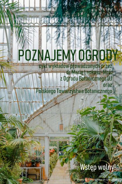 Wykład dr Marii Lankosz-Mróz z Ogrodu Botanicznego UJ oraz Polskiego Towarzystwa Botanicznego w ramach cyklu „Poznajemy Ogrody”. Wstęp wolny.