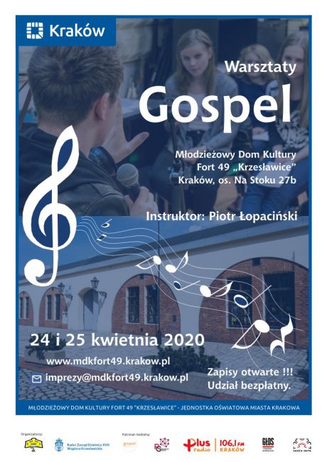 Fort 49 „Krzesławice” odbędą się międzypokoleniowe warsztaty muzyki gospel. Do udziału zapraszamy każdego kto lubi śpiewać i marzy o energetycznym, niepowtarzalnym, dobrze spędzonym czasie.