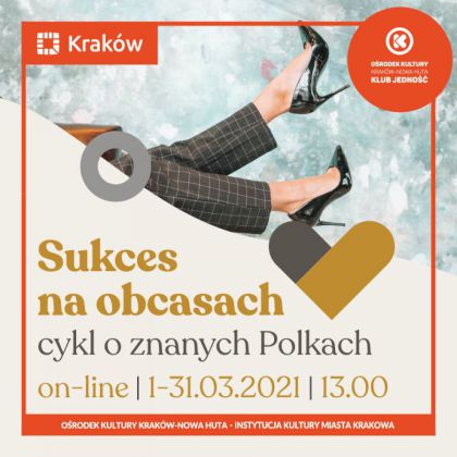 Klub Jedność Ośrodka Kultury Kraków-Nowa Huta zaprasza na cykl ciekawostek dotyczących znanych Polek, które zasłynęły na przestrzeni dziejów. W pierwszym tygodniu poznamy kilka subiektywnie wybranych bohaterek narodowych, w drugim zapoznamy się z kobietami, które zasłynęły w dziedzinie nauki, trzeci tydzień dedykujemy kobietom ze świata sztuki a czwarty sportu i rozrywki. W każdym tygodniu przybliżymy postacie kilku kobiet. Nie będziemy Was zanudzać całymi biografiami, ale poszukamy. Nie będą to całe biografie tylko anegdoty z ich życia, które zainteresują odbiorców. Przez cały marzec będziemy te informacje umieszczać na Klubowym Facebooku, po trzy lub cztery przykłady na tydzień. Informacje będą przekazywane w ciekawej formie np. różnego rodzaju filmiki oraz posty tekstowe, o godz. 13.00. Filmy prezentowane będą na stronie Klubu w serwisie Facebook.