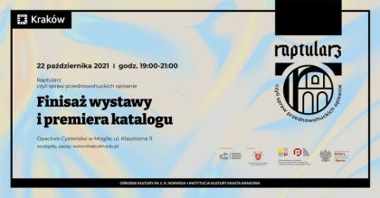 19:00 – 21.00. Uroczyste zamknięcie wystawy „Raptularz, czyli spraw przednowohuckiCh opisanie”, uświetnione humorystyczną projekcją filmu making off z rejestracji z projektu „Raptularz, czyli spraw przednowohuckich opisanie” oraz zapowiedzią na dalsze działania (jubileusz 800-lecia opactwa, działalnością muzeum), wręczeniem wszystkim obecnym bezpłatnego katalogu wystawy oraz gadżetów promocyjnych tego projektu (maseczki i torby).
