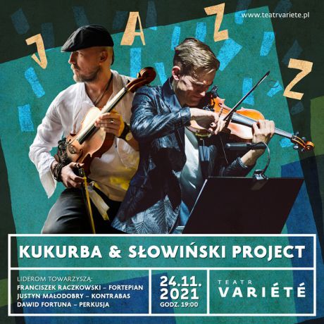 Koncert Kukurba & Słowiński Project odbędzie się w Krakowskim Teatrze VARIETE 24 listopada 2021 roku o godzinie 19:00. Bilety w cenie 65 zł do nabycia w kasie Teatru bądź on-line.