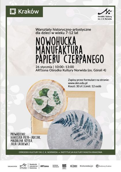 Wstęp: 30 zł (respektujemy Krakowską Kartę Rodzinną 3+, KKR z Niepełnosprawnym Dzieckiem). Limit: 12 osób, decyduje kolejność zgłoszeń.