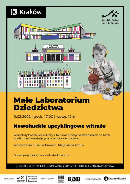 Małe Laboratorium Dziedzictwa – comiesięczne zajęcia dla niewielkiej grupy dzieci o dziedzictwie kulturowym i przyrodniczym, szczególnie Nowej Huty. Każde spotkanie posiada osobny temat. Podczas zajęć prowadzący i uczestnicy wspólnie podróżują po czasie i przestrzeni terenów Nowej Huty, odkrywając nowe tematy i obszary takie jak dziedzictwo niematerialne, architektura, rzeźby plenerowe czy Łąki Nowohuckie. Istotą spotkań jest nie tylko opowiadanie o dziedzictwie, ale przede wszystkim interpretowanie go wspólnie z uczestnikami i pobudzenie ich do własnych przemyśleń. Zgodnie z teorią interpretacji dziedzictwa Freemana Tildena prowadzący starają się wyjaśniać znaczenia i zależności dziedzictwa, dostosowując przekaz do możliwości i kompetencji odbiorców. Poprzez różne interaktywne formy warsztatowe tworzone są warunki do bezpośredniego doświadczania dziedzictwa i eksperymentowania z nim. Proponowana formuła prowadzi do lepszego zrozumienia otaczającej nas rzeczywistości kulturowej i przyrodniczej w jej złożonym całokształcie, a w efekcie do większej troski o nią.