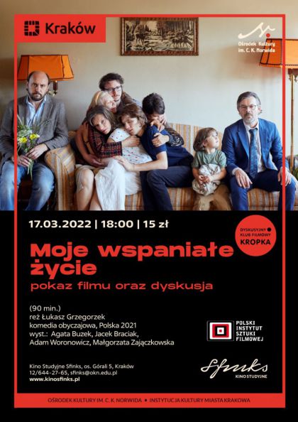 Dyskusyjny Klub Filmowy „Kropka” zaprasza na film „Moje wspaniałe życie: w reż. Łukasza Grzegorzka; po seansie zapraszamy na dyskusję.