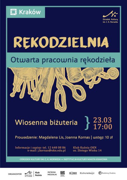 Zapraszamy na kolejną „Rękodzielnie” w Klubie Kuźnia Ośrodek Kultury im. C.K. Norwida. W ramach marcowego spotkania uczestnicy zajęć stworzą wiosenną biżuterię.