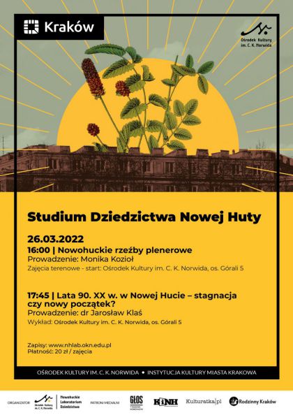 Wstęp: 20 złotych / zajęcia. Obowiązują zapisy przez formularz na www.nhlab.okn.edu.pl (do 24 III).