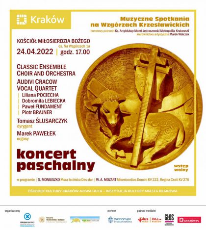 W pierwszą niedzielę po Wielkanocy - 24 kwietnia, w święto Miłosierdzia Bożego i obchodzony, w tym dniu parafialny odpust, w kościele na Wzgórzach Krzesławickich o godzinie 17.00 odbędzie się Koncert Paschalny w ramach cyklu Muzyczne Spotkania na Wzgórzach Krzesławickich.