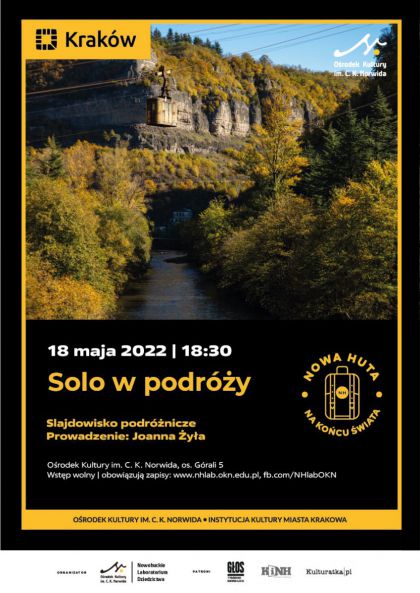 Majowe slajdowisko z cyklu Nowa Huta na końcu świata skupi się na podróżowaniu w ujęciu „jak” a nie „gdzie”. Prowadząca podróżuje sama od ponad 20 lat – ostatnie wyprawy to Meksyk i Kaukaz. Między innymi na ich przykładzie będzie oparta opowieść o samodzielnym, kobiecym podróżowaniu. Co daje podróż w pojedynkę – czy płeć ma tutaj znaczenie? Jakie są zalety i wady takiego podróżowania? Trudniej czy łatwiej zaplanować wyjazd solo – cała logistyka spoczywa na jednej osobie, ale z drugiej strony nie trzeba wszystkich decyzji konsultować z towarzyszami/kami. Czy samotność w podróży przeraża czy daje wolność i sposobność przyjrzenia się sobie?