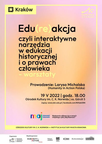 Spotkanie warsztatowe dedykowane nauczycielom_kom, aktywistom_kom, edukatorom_kom - osobom zainteresowanym edukacją antydyskryminacyjną. Wydarzenie w ramach II edycji miejskiej inicjatywy Maj równości.