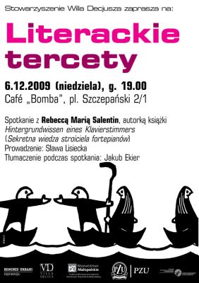 Stowarzyszenie Willa Decjusza w ramach programu „Literackie tercety” zaprasza w niedzielę, 6 grudnia, o godzinie 19.00 do Café „Bomba” (Kraków, pl. Szczepański 2/1) na spotkanie z Rebeccą Marią Salentin, autorką książki „Hintergrundwissen eines Klavierstimmers“ („Sekretna wiedza stroiciela fortepianów”). Spotkanie poprowadzą Sława Lisiecka i Jakub Ekier (tłumaczenie).