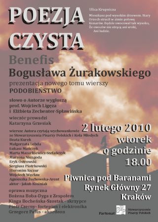 Mury Piwnicy pod Baranami gościć będą benefis oraz prezentację nowego tomu wierszy –„Podobieństwo”, znakomitego krakowskiego poety – Bogusława Żurakowskiego.