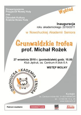 Nowohucka Akademia Seniora zainauguruje rozpoczęcie roku akademickiego 2010/2011 wykładem profesora Michała Rożka pt. Grunwaldzkie trofea. Wystąpienie nawiązywać będzie do obchodzonej w tym roku 600 rocznicy Bitwy pod Grunwaldem.