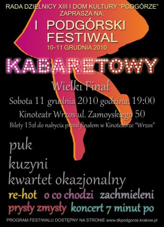 Krakowskie Podgórze wzbogaciło swoja ofertę kulturalno – rozrywkową o festiwal kabaretowy. W programie festiwalu przewidziane zostały warsztaty dla amatorskich kabaretów prowadzone przez doświadczonych artystów (Kwartet Okazjonalny, Kabaret Kuzyni, Kabaret PUK) a także happeningi i konkurs dla młodych kabaretów.