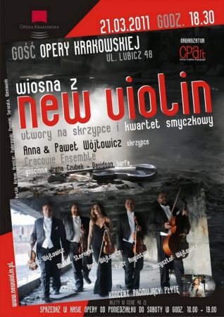 21 marca o godz. 18.30 w pierwszy dzień wiosny zapraszamy na koncert Wiosna z New Violin. Zespół New Violin tworzą Soliści Orkiestry Opery Krakowskiej. Podczas koncertu promującego płytę „New violin – Works for violin and string quartet” usłyszymy kompozycje najwybitniejszych twórców literatury skrzypcowej. Prezentowane utwory mogliśmy usłyszeć do tej pory głównie w ich pierwotnych wersjach: na skrzypce solo, z towarzyszeniem fortepianu bądź orkiestry. Współczesnemu spojrzeniu krakowskich artystów zawdzięczamy ponowne ich odkrycie. Dzięki nowatorskiemu pomysłowi, aby solistom towarzyszył kwartet smyczkowy, uzyskano zupełnie nowe brzmienie. Czeka nas więc miła niespodzianka. Błyskotliwość Bazziniego przeplata się z kantyleną Wieniawskiego, ognistym temperamentem Sarasatego czy mało znaną kompozycją Kirmana. Na płycie New Violin znajdziemy również nastrojowo brzmiącego Paderewskiego, ludowe motywy Bartoka i żywiołowego Kreislera.