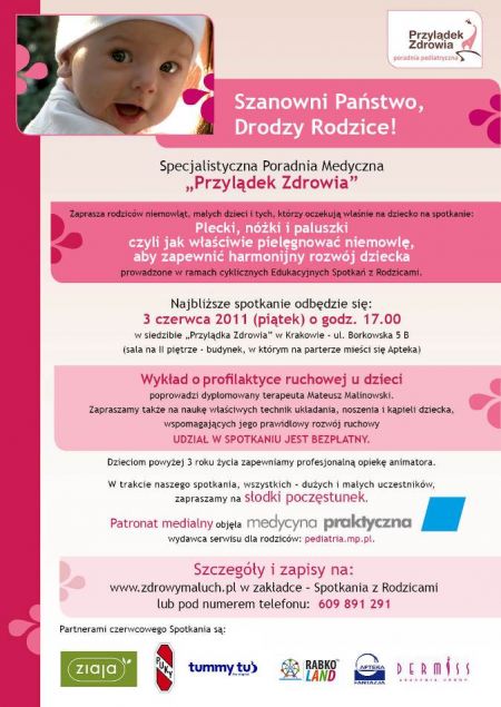 Drugie już z cyklicznej serii Spotkań Edukacyjnych dla Rodziców odbędzie się w piątek, 3 czerwca 2011, o 17.00, w siedzibie Specjalistycznej Poradni Medycznej „Przylądek Zdrowia” przy ul. Borkowskiej 5 B w Krakowie.