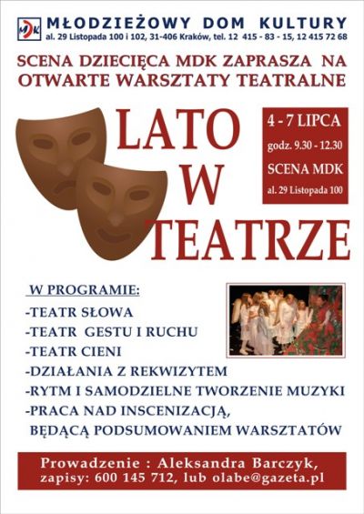 - 13 lat do udziału w warsztatach teatralnych "Lato w teatrze"