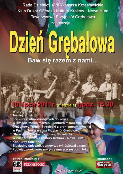 Ośrodek Kultury Kraków – Nowa Huta, Rada i Zarząd Dzielnicy XVII Wzgórza Krzesławickie oraz Towarzystwo Przyjaciół Grębałowa zapraszają mieszkańców dzielnicy na coroczne obchody Dnia Grębałowa.