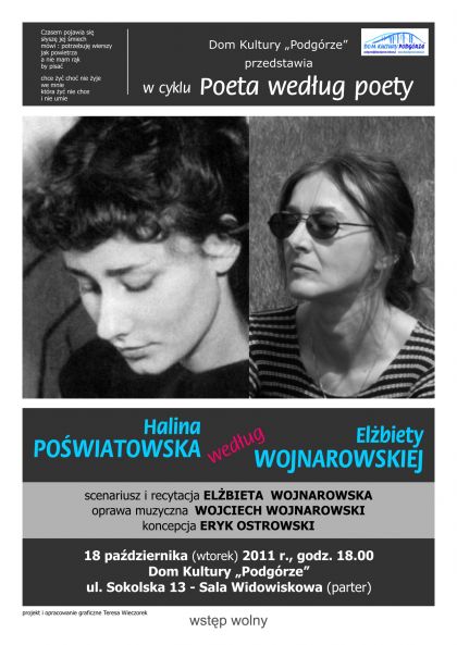 Podgórska Scena Poezji serdecznie zaprasza na niezwykły wieczór poezji Haliny