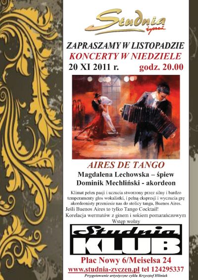 Klimat pełen pasji i uczucia stworzony przez silny i bardzo temperamenty głos wokalistki, i pełną ekspresji i wyczucia grę akordeonisty przeniesie nas do stolicy tanga, Buenos Aires.