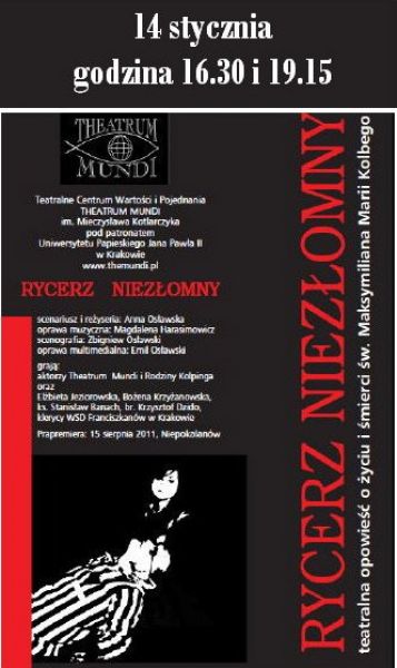 W sobotę 14 stycznia w krakowskim CSW Solvay będzie można obejrzeć teatralną narrację o życiu i śmierci św. Maksymiliana Marii Kolbego.