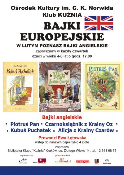 Zapraszamy do Klubu Kuźnia OKN na cotygodniowe spotkania z baśnią i bajką europejską dla dzieci przedszkolnych.