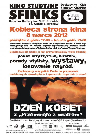 Kino Studyjne Sfinks i Ośrodek Kultury im. C. K. Norwida serdecznie zapraszają wszystkie Panie do świętowania razem z nami tego szczególnego dnia. W ramach imprezy zaprezentowany zostanie klasyk amerykańskiej kinematografii „Przeminęło z wiatrem” w reż. Victora Fleminga.