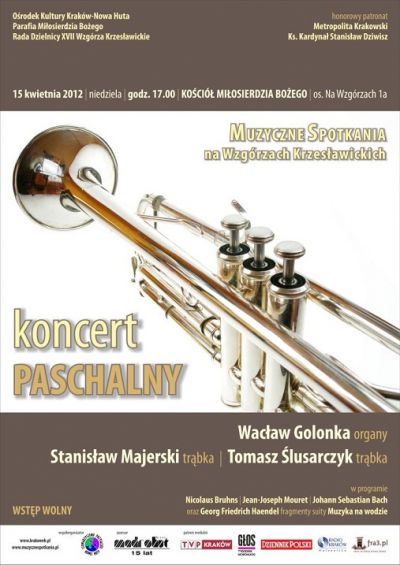 Na kolejnym koncercie z cyklu Muzyczne Spotkania Na Wzgórzach Krzesławickich, który odbywa się w Parafii Miłosierdzia Bożego (os. Na Wzgórzach 1a), wystąpią: Wacław Golonka – organy, Tomasz Ślusarczyk – trąbka oraz Stanisław Majerski – trąbka.
