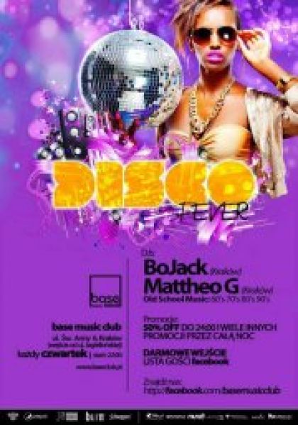 W najbliższy czwartek zapraszamy na całkowicie nowy, jeszcze pachnący świeżością cykl imprezy pt. DISCO FEVER... Najlepsza muzyka spod znaku DISCO serwowana przez dobrze znanych krakowskiej publiczności: BoJack & Mattheo G. Zapraszamy!