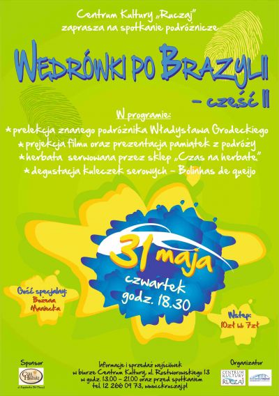 "Wędrówki po Brazylii - część II" to kolejne spotkanie Klubu Podróżnika w CK "Ruczaj" poświęcone Brazylii. Zapraszamy w czwartek, 31 maja o godz. 18:30.