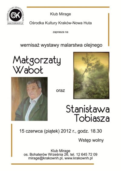 Tym razem podczas wernisażu wystawy malarstwa olejnego swoje prace zaprezentują Małgorzata Waboł oraz Stanisław Tobiasz.