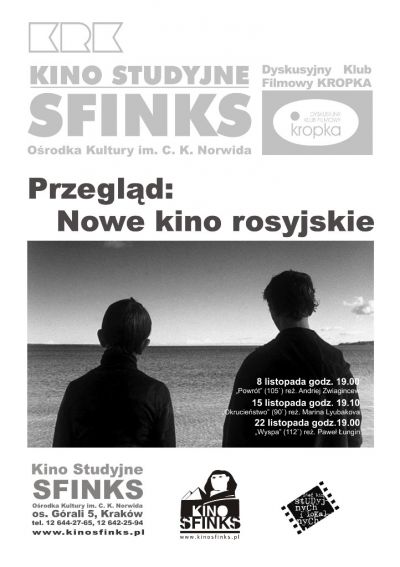 Dyskusyjny Klub Filmowy Kropka Kina Studyjnego Sfinks (os. Górali 5) serdecznie zaprasza wszystkich miłośników kina na listopadowy przegląd „Nowe kino rosyjskie”, przybliży kinomanom to, co działo się w kinie rosyjskim ostatnich lat.