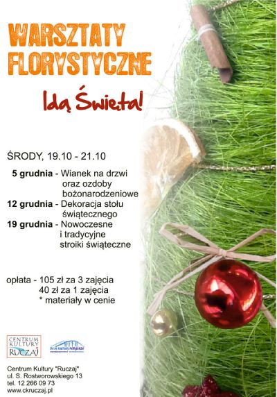 Centrum Kultury "Ruczaj" zaprasza na kolejny cykl warsztatów florystycznych.