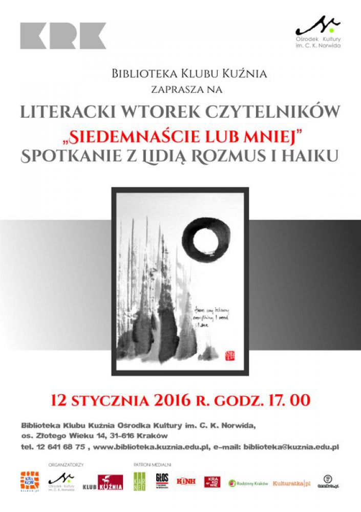 Literacki wtorek czytelników: „Siedemnaście lub mniej” Spotkanie z Lidią Rozmus i haiku