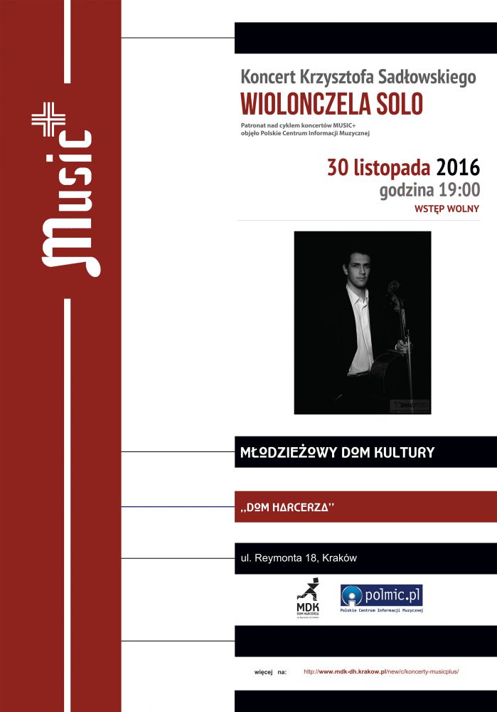 Koncert z cyklu MUSIC + Krzysztof Sadłowski „Wiolonczela solo"