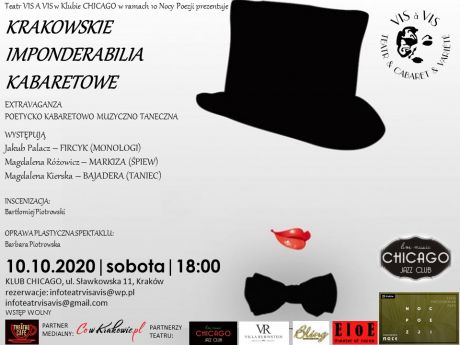 Teatr VIS A VIS zaprezentuje w Klubie CHICAGO wyjątkowy, rozśpiewany i roztańczony spektakl poetycko kabaretowy w oryginalnej konwencji extravaganzy…