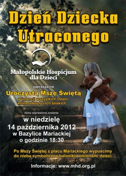 Msza zostanie odprawiona przez Kapelana Hospicjum dla Dzieci, o. Tomasza, w niedziel 14 padziernika 2012 roku, o godz. 18.30 w krakowskiej Bazylice Mariackiej.(...) ... więcej » |