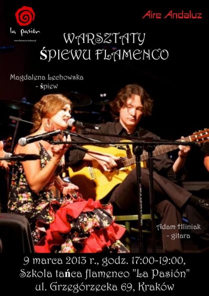 Aby sprawnie porusza si w wiecie muzyki i taca flamenco, poza umiejtnociami praktycznymi, konieczna jest znajomo struktur palos, ich rytmw, czy zasad kompozycji taca. Zapraszamy tancerzy, jak rwnie wszystkie osoby zainteresowane fenomenem flamenco, na warsztaty z teorii flamenco. Zajcia bd obejmoway przegld rnyc(...) ... więcej » |