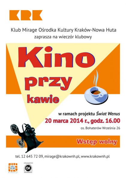 Spotkanie z kinem o tematyce kobiecej w ramach projektu wiat Wenus, poprzedzone wprowadzeniem w wykonaniu zaproszonych goci znawcw kina i psychologii kobiety.