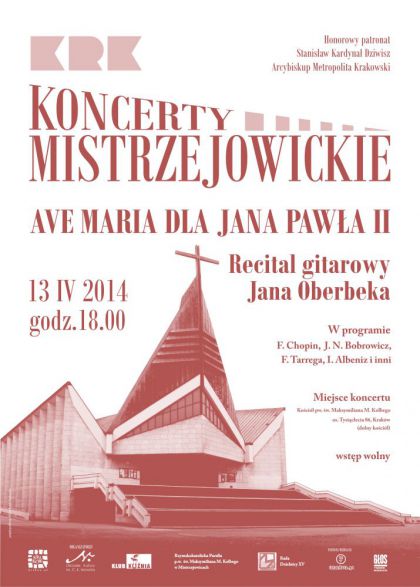 W ramach Koncertw Mistrzejowickich Klub Kunia Orodka Kultury im. C. K. Norwida serdecznie zaprasza do Kocioa pw.w. M.M.Kolbego na recital gitarowy Jana Oberbeka pn. AVE MARIA DLA JANA PAWA II.