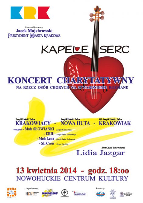 | Oka dobre serce i przyjd na koncert charytatywny "Kapele serc" dedykowany osobom chorym na stwardnienie rozsiane. Wydarzenie to jest kontynuacj akcji zainicjowanych w 2009 roku przez Polsk Sekcj Midzynarodowej Rady Stowarzysze Folklorystycznych, Festiwali i Sztuki Ludowej CIOFF z inicjatywy Zespou Pieni i Taca Uniwersytetu Warszawskiego Warszawianka. "Kapele Serc" s okazj do okazania chorym wsparcia i umocnienia wiary w drugiego c(...) ... więcej » |