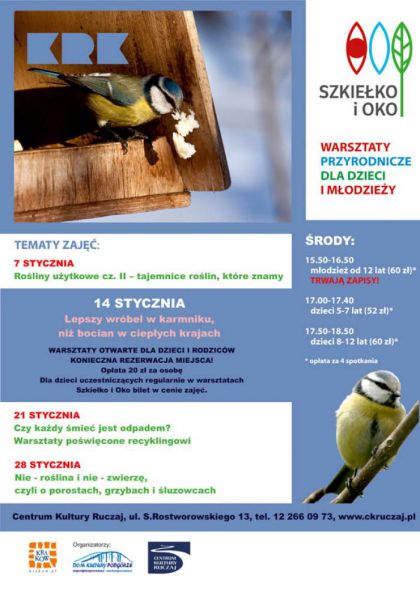 SZKIEKO i OKO to warsztaty edukacyjne z szeroko rozumianej przyrody dla dzieci w wieku 5-14 lat. Rozbudzaj pasj poznawania otaczajcego wiata i ciekawo przyrodnicz. S to interaktywne prezentacje poczone z pokazami wykonywanymi przez prowadzcego oraz eksperymentami uczestnikw. Dzieci poznaj przyrod przez ogldanie okazw rolin i zwierzt. Utrwalenie zdobytych wiadomoci uatwiaj zabawy dostosowane do wieku uczestnikw.