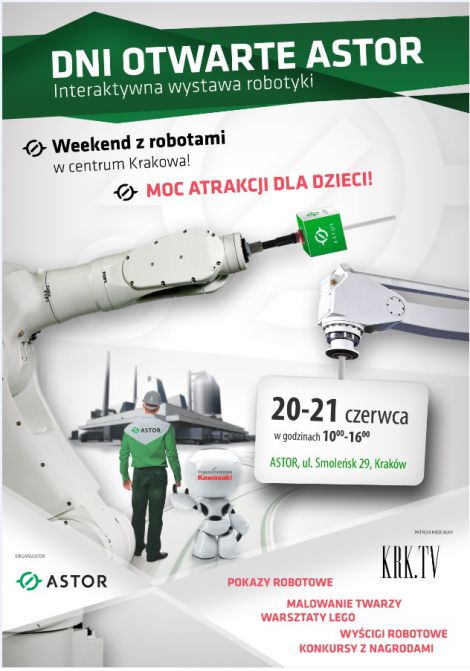 W weekend 20 - 21 czerwca na ju drugiej edycji Dni Otwartych ASTOR, interaktywna wystawa robotyki udostpni swoje atrakcje dla mieszkacw Krakowa. Pokazy robotw przemysowych, warsztaty z programowania klockw LEGO, zabawy dla najmodszych to wszystko czeka na odwiedzajcych ASTOR Innovation Room.