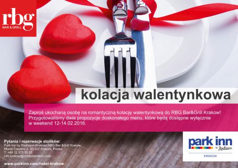Zapraszamy na romantyczn kolacj walentynkow do RBG Bar&Grill Krakow! Przygotowalimy dla Pastwa smakowite menu zawierajce wiele ciekawych pozycji dostpne przez cay weekend walentynkowy 12-14 luty 2016.